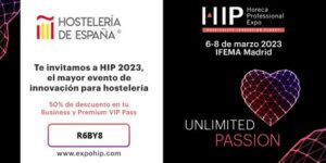 #HIP2023 del 6 al 8 de marzo en Madrid, el mayor evento de innovación para impulsar la hostelería española. Desde NOMBRE ASOCIACIÓN te ofrecemos un 50% de descuento en tu pase. https://www.expohip.com/visitar/tickets-y-beneficios/