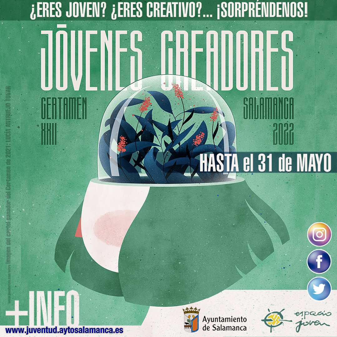 27/05/2022 CERTAMEN JOVENES CREADORES SALAMANCA 2022 Recuerda: ¡¡Últimos días!! Fin plazo presentación de obras: 31 de mayo. #cocina en el Espacio Joven Salamanca (calle José Jáuregui, 16) de lunes a viernes de 8:30 a 14:00h. y de 17:00 a 20:00h. Puedes descargar los documentos de participación en el siguiente enlace: http://www.juventud.aytosalamanca.es/…/jovenescreadores/ Más info http://noticias.aytosalamanca.es/…/noticias/noticia_8056