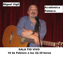 Miguel Vigil, nace y crece, poco, en Madrid. Tras comprobar que no le gusta estudiar ni trabajar, decide hacerse artista. Duda entre hacerse escritor, actor, humorista, cantante, guitarrista, compositor, embustero ó bailarín; y al final, decide ser un poco de todo, destacando en lo de embustero. En 1.989 funda el grupo cómico musical ACADÉMICA PALANCA, y desde entonces compagina esta labor con sus actuaciones en solitario.