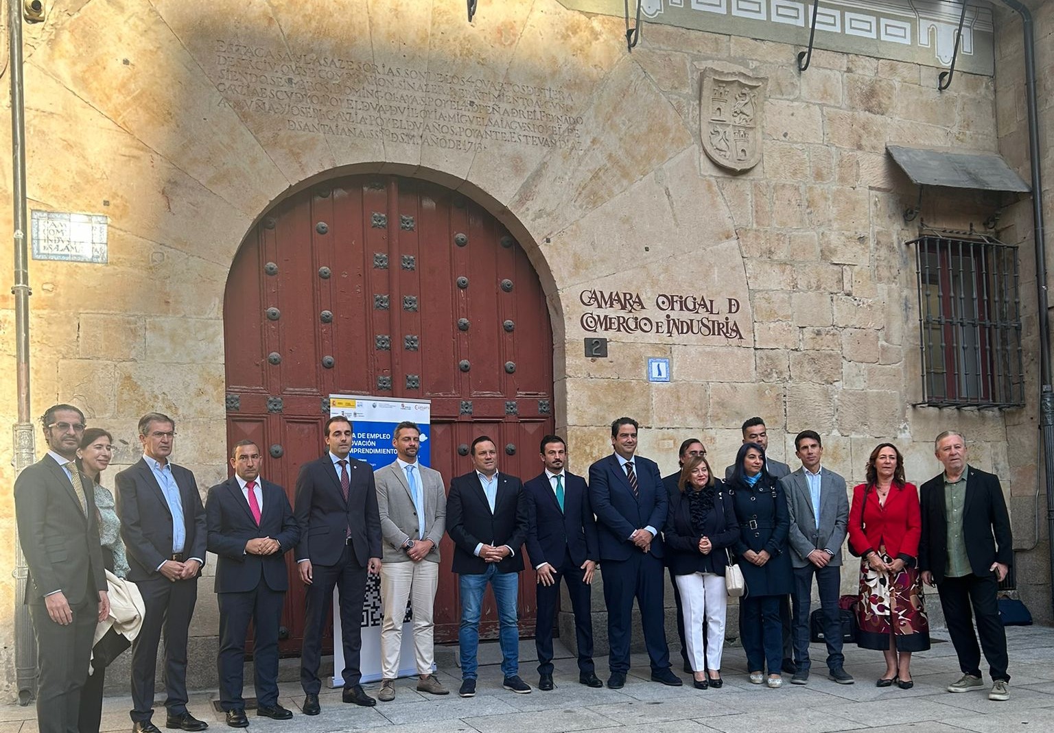 Nuestro presidente Jorge Carlos Moró también acompañó en el acto de presentación al delegado territorial de la Junta de Castilla y León, Eloy Ruiz, la gerente provincial del ECYL, María Reyes Gallego y al presidente de la Cámara de Comercio de Salamanca, Alberto Díaz.
