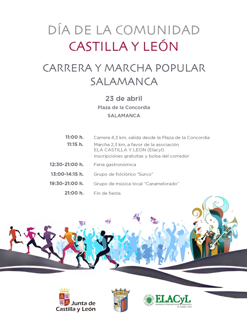 17/04/2024 DIA DE LA COMUNIDAD DE CASTILLA Y LEÓN EN SALAMANCA Salamanca también celebra el día 23 de abril el Día de la Comunidad de Castilla y León, con deporte, música y la mejor gastronomía local. Disfruta de un día en familia y Participa en la carrera popular solidaria y marcha en familia. Inscripción gratuita. https://inscripciones.runvasport.es/…/carrera-y-marcha…/