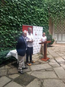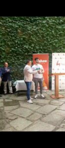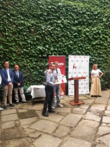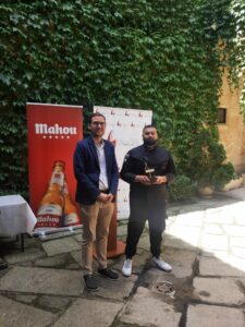 Un lote de productos de coca cola, resultando ganador José María Sánchez Vicente hace entrega , el responsable de comunicación de Coca Cola, Alberto Perez .y un segundo lote cedido por Mahou , resultando ganador Dámaris de las Heras Fernández, hace entrega , el representante de Mahou , Samer Nimer.