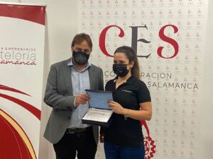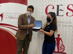 El pincho más valorado por el público en la categoría MEJOR PINCHO FERIA DE DIA 2021, ha sido el establecimiento «LA CELESTINA» con su Pincho HAMBURGUESITA DE RABO DE TORO GUISADO, haciendo entrega del premio al mejor pincho feria de día 2021, el Concejal de Turismo del Ayuntamiento de Salamanca, D. Fernando Castaño.