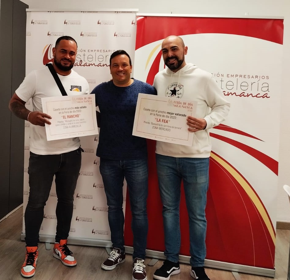 Esta misma mañana nuestro presidente Jorge Carlos Moro Corredera, ha hecho entrega en la sede de la Asociación de Hostelería de los diplomas a la caseta con el pincho «Más votado «, el cual ha recaído en el establecimiento El Rancho por su «Montadito de lomo, bacon, queso chedar y salsa de la casa (ranchito)» y a la caseta con el pincho » Mejor Valorado», el cual ha recaído en el establecimiento La Fea por su » Quesadilla de carrillera de ternera » en FERIA DE DIA 2022.