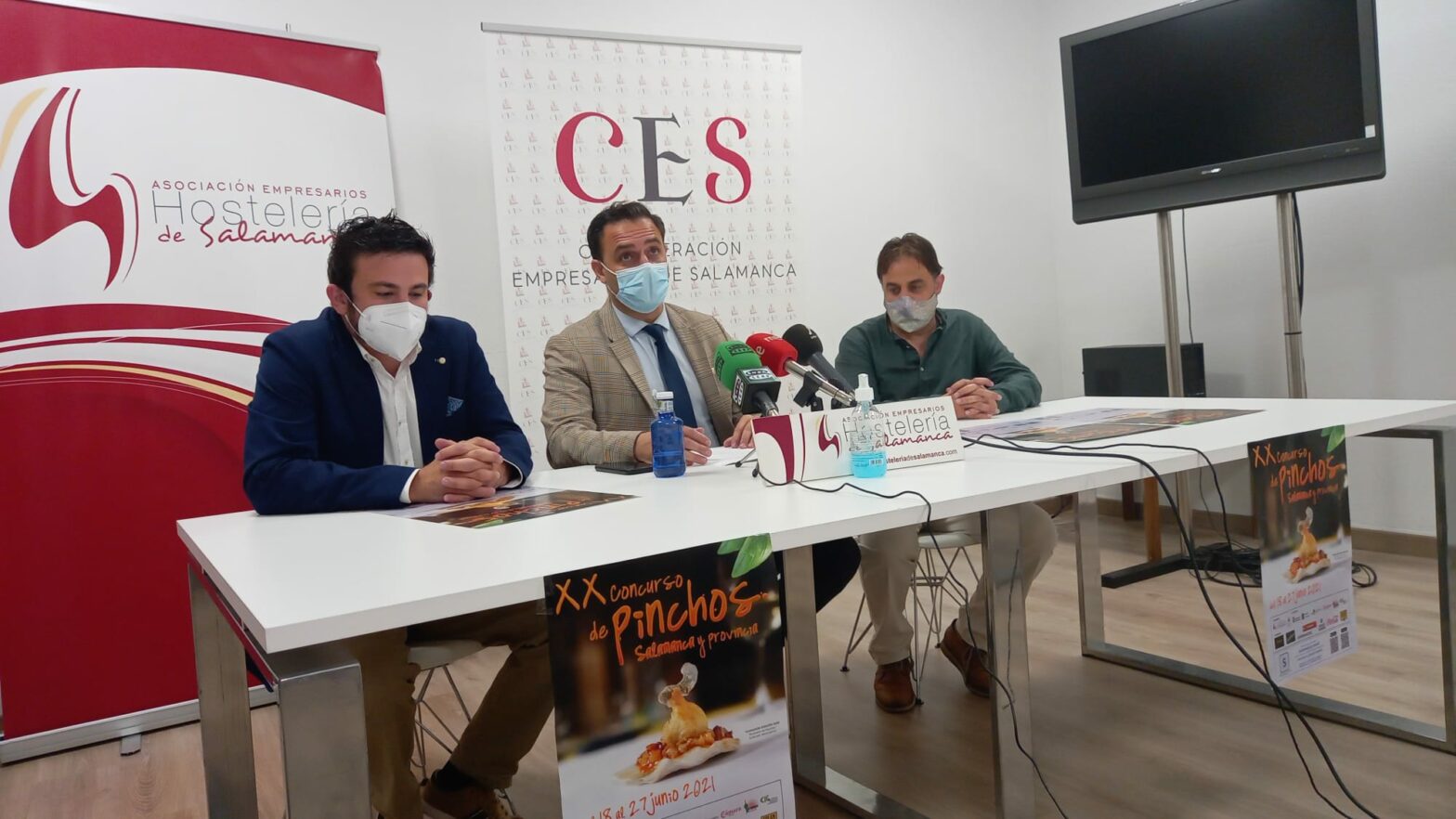 Esta mañana, 18 de junio 2021, se ha presentado la XX Edición del Concurso de Pinchos 2021, en la Asociación de Empresarios de Hostelería de Salamanca por su Presidente D. Álvaro Juanes, por el Concejal de Turismo, del Ayuntamiento de Salamanca, D. Fernando Castaño Sequeros y  por el  Diputado de Turismo y Patrimonio Artístico de la Diputación de Salamanca, D. Javier García Hidalgo. Acompañados por D. Antonio Rollán representando a la Cámara de Comercio de Salamanca y la Confederación de Empresarios de Salamanca.