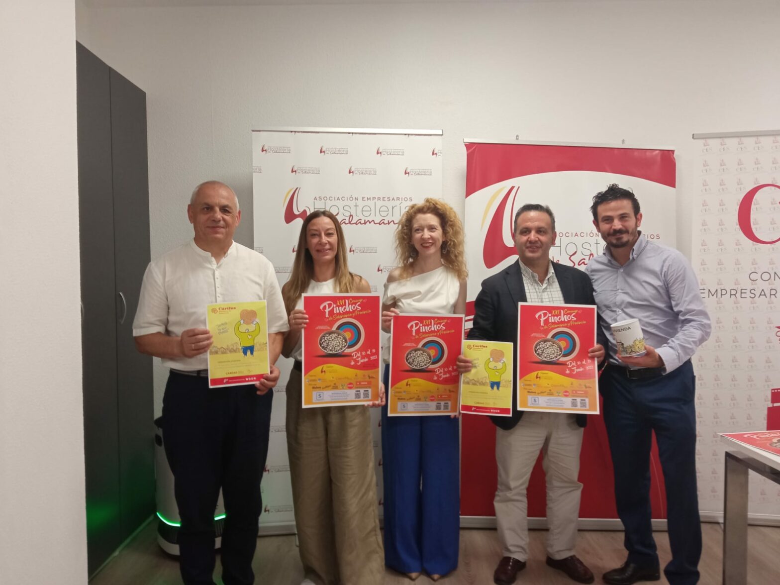 Esta mañana, 10 de junio 2022, se ha presentado la XXI Edición del Concurso de Pinchos 2022, en la Asociación de Empresarios de Hostelería de Salamanca por su representante de restauración Dña. Ana Ramon Rodriguez, la primera teniente alcalde del Excmo. Ayuntamiento de Salamanca, Dña. Ana Suarez Otero y por el Diputado de Turismo y Patrimonio Artístico de la Diputación de Salamanca, D. Javier García Hidalgo. Acompañados por D. Benjamín Crespo, presidente de la Cámara de Comercio, D. Antonio Rollan presidente de la Confederación de Empresarios de Salamanca y D. José María Rodríguez Álvarez, secretario general de Caritas Diocesana.