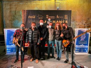 El concejal de Turismo, Fernando Castaño, junto con el presidente de la AEHS, Álvaro Juanes, han asistido a la presentación, de nuevo, de un ciclo que cuenta, además, con la colaboración de Coca Cola y Comercial Acera. “Vuelve Salamanca” nace con un triple objetivo: Fomentar la actividad del ocio nocturno salmantino, uno de los motores económicos y de empleo de nuestra ciudad, apoyar en la contratación de músicos y artistas locales, y por tanto poner en valor la cultura musical de Salamanca, así como favorecer a las empresas de producción y sonido de nuestra provincia, todos ellos colectivos afectados por la suspensión de eventos durante los meses más duros de la pandemia, y de cuyos empleos dependen centenares de familias.