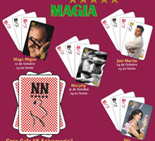 EL 10 DE OCTUBRE ABRIRA EL CAMPEON DEL MUNDO MIGUEL PUGA, SEGUIDO EL 17 DE OCTUBRE POR EL TELEVESIVO MAGO MURPHY, POSTERIORMENTE EL 24 DE OCTUBRE SERA EL TURNO PARA JAVIER MARTIN QUE TAMBIEN ES EL DIRECTOR DEL CICLO PARA FINALIZAR LAS ACTUACIONES EL 7 DE NOVIEMBRE CON LA MAGA DE MAYOR PRESTIGIO EN NUESTRO PAIS INES. ESTE AÑO CON MOTIVO DEL DECIMO ANIVERSARIO SE CELEBRARA UNA GALA CON LA PARTICIPACIÓN DE SEIS ARTISTAS QUE HAN PASADO EN LOS AÑOS ANTERIORES POR EL ESCENARIO DE LA ESPANNOLA.